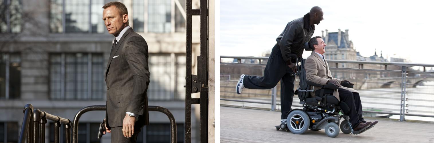 De grootse verrassing van het bioscoopjaar 2012 was misschien wel dat twee totaal verschillende films de grootste publiekstrekkers waren. Op de eerste plaats de nieuwe James Bond Skyfall, natuurlijk, met bijna 2 miljoen bezoeken. Maar dat de nummer twee (1,2 miljoen) een Franse komedie over een invalide rijkaard en zijn zwarte vriend van de straat zou worden had aanvankelijk niemand verwacht. Intouchables, uitgebracht door de kleine arthousedistributeur Filmfreak is de surprisehit van het afgelopen jaar. De best bezochte Nederlandse film is Alles is familie, met ruim 641 duizend op de achtste plaats.