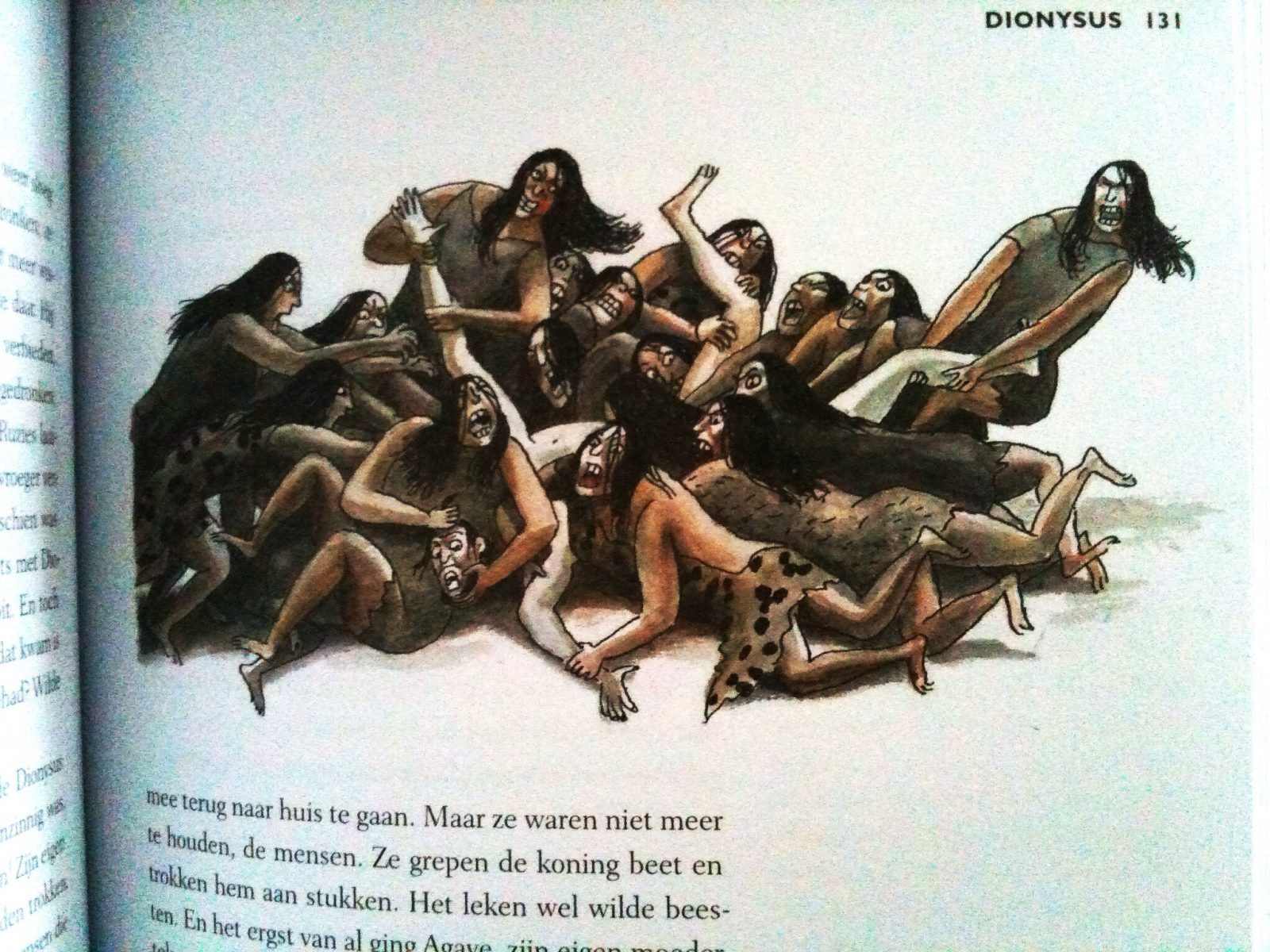 Een aantal prachtige, maar gruwelijke tekeningen van Thé Tjong-Khing, uit zijn boek De Griekse Mythen, komen voorbij. Breedveld: “Wat gebeurt hier?!” Thé: “Oh, die wordt een beetje uit elkaar gerukt. Maar da’s niet zo erg, toch? Er is maar weinig bloed. Zo gebeurt er tenminste nog eens wat. Ik hou niet zo van dat zoetsappige gedoe.”
