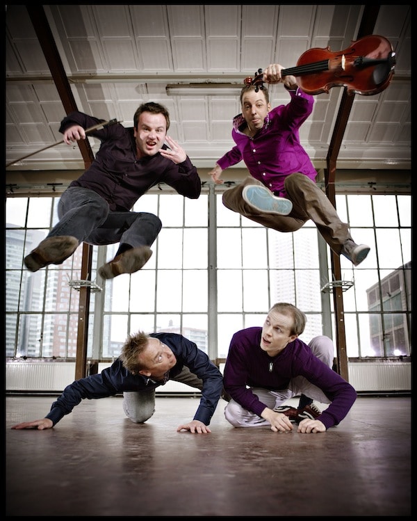 Het avontuurlijke strijkkwartet vervaagt de grenzen tussen klassiek, wereld, jazz en popmuziek en heeft een eigen following opgebouwd die zich luidruchtig roert. De musici spelen met aanstekelijk enthousiasme eenvoudige, tonale melodietjes. Ze onderstrepen de swingende ritmes met gestamp, zingen lijntjes mee en improviseren scheurende solo’s die herinneren aan de elektrische gitaar uit de popmuziek. Jammer dat de vijf strijkers wat intonatieproblemen hebben.