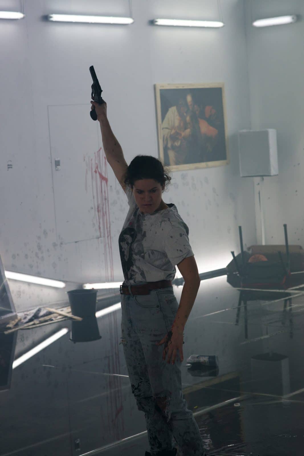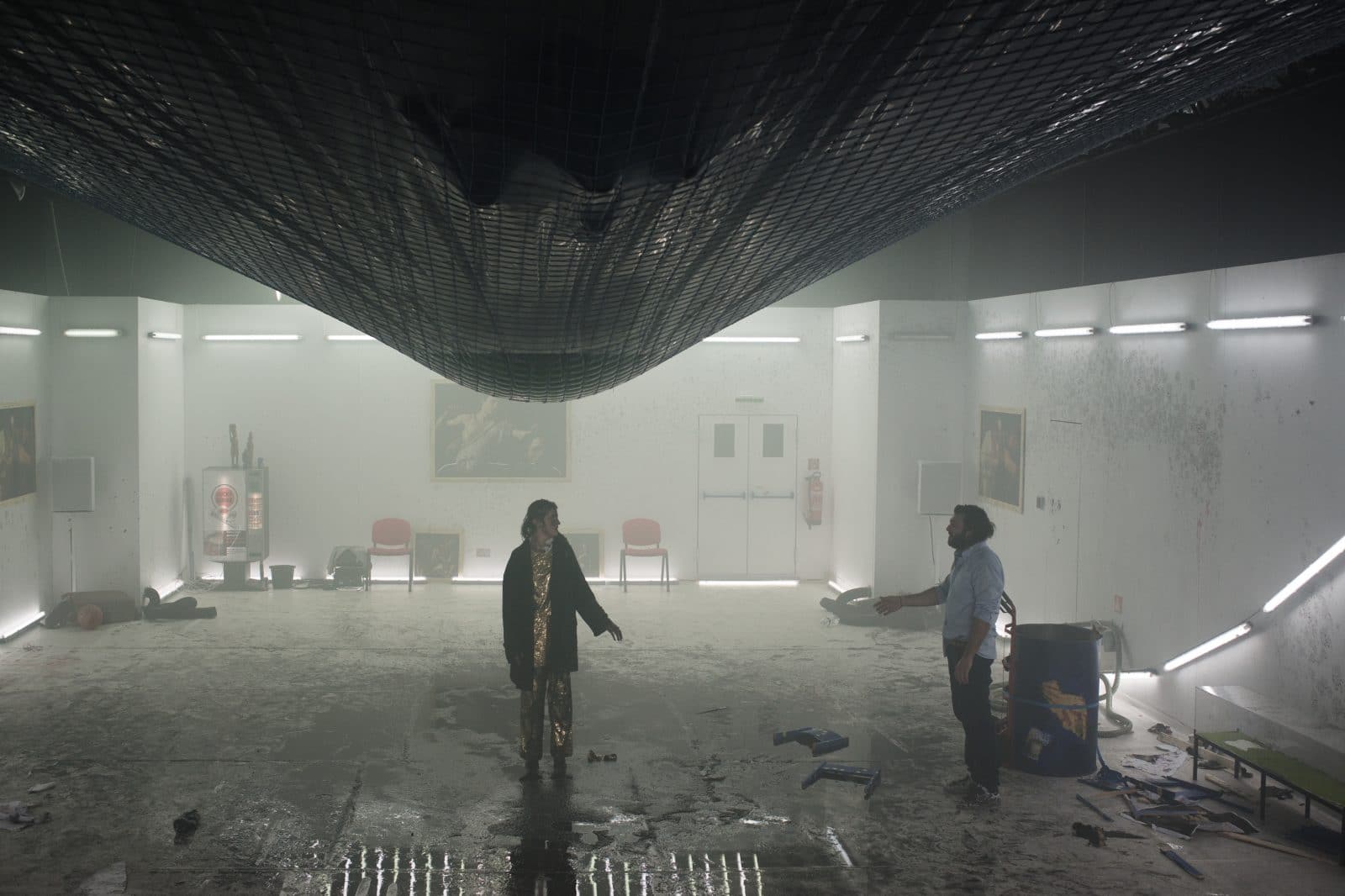 VM: ‘In het begin wilde ik een verhaal tonen van een vrouw, alleen in een kamer, die zich met rijkdom en kunst steeds meer van de wereld isoleert. Dat was het startpunt. Tegelijkertijd wilde iets zeggen over onze huidige cultuur, waarbij de overheid en de publieke sector steeds meer functies uit handen geven aan particuliere instanties: dubieuze, kunstmatige constructies die van publieke kunst privékunst maken. Kunst wordt zo steeds meer een investeringsobject, wat ertoe leidt dat kunstenaars geen risico meer durven nemen. Zo vreet de kunstsector zichzelf op. Dat vind ik een groot gevaar voor onze cultuur. Daar wilde ik iets over zeggen.’