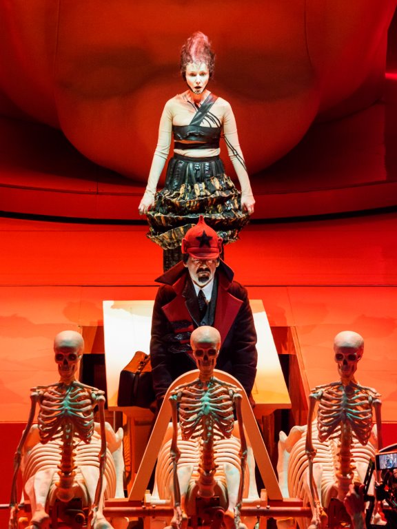Op papier beloofde deze nieuwe productie van het Holland Festival een interessant licht te werpen op de werking van tirannie. Joechananov en Kourliandski brengen drie historische heersers samen. De Chinese keizer die met zijn leger begraven wil worden, de Romeinse heerser Nero die zijn eigen stad verwoest, de Russische revolutionair Lenin die net zo’n tiran blijkt te zijn als de door hem verdreven tsaar. Het toneel baadt veelal in bloedrood licht, net als de opengeklapte schedel van Lenin (trepanatie = schedellichting). Een rode draad in het verhaal valt echter niet te ontdekken.