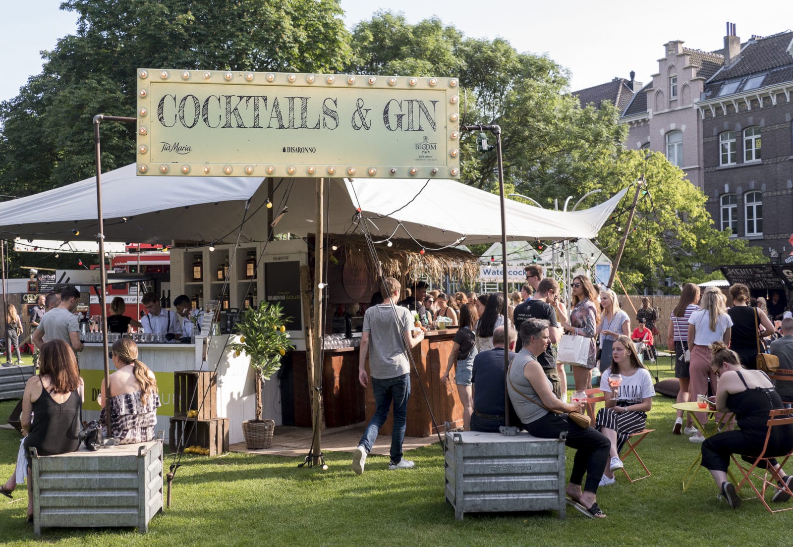 Niet alles is te voorzien. Het TREK-management werd verrast door de kleedjes. ‘Bezoekers namen ineens kleedjes mee en gingen op het gras zitten, tussen foodcars en podium. Ja, dachten we. Zo moet het zijn, Het Dag in het Park-idee.’ Buiten de hekken (speciaal bekleed met riet, om ze er vriendelijk uit te laten zien) walst de sfeer nog even door in de straatjes van Maastricht, met dat gezegende dialect, alsof elke inwoner hier in continue staat van prettig-aanvaardbare aangeschotenheid verkeert.