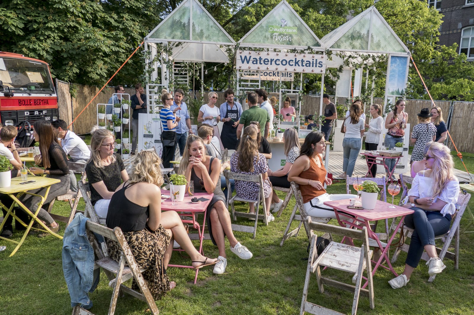 Masterchef en als verloofde van Katja Schuurman ook nog eens een Bekende Nederlander. ‘Ik ben de hoofdambassadeur van Chaudfontaine’, zegt Freek. ‘Dat hoort bij Coca-Cola, van de Vuurtorenbar.’ Just, de onontkoombare BurgeRmeester van TREK (de R komt van ‘burger’) legt uit. ‘Sponsors zijn nodig. We willen dat ze zich heel terloops en onopvallend presenteren. Coca-cola heeft enkel een nostalgisch wandje bij de Vuurtorenbar.’