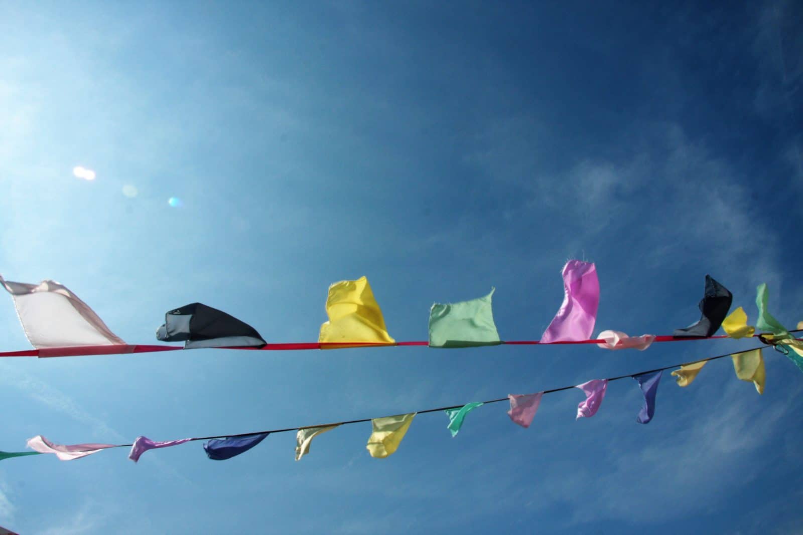 Vandaar ook die rustige pasteltinten die overal op het terrein terugkeren. In de vlaggetjeslijnen die over het hele plein getrokken zijn, de hekken die bekleed zijn met het zachtrode en -gele logo, de azuurblauwe en babyroze tafels, stoelen en plantenbakjes. Dit is ook een doelgroep die nadenkt over duurzaamheid, benadrukt Kris – vandaar dat je aan het begin van je verblijf een plastic glas koopt, dat je na afloop van het festival gewoon mee naar huis mag nemen.