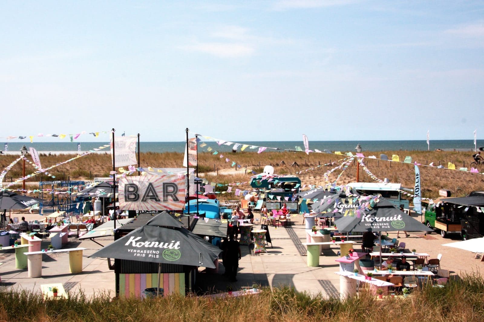 Dat zorgt voor verwarring. En voor een rustig festivalterrein, op deze zonnige vrijdagmiddag. De omstandigheden zijn perfect: de schoolvakanties zijn begonnen, de frisse zeewind maakt de al wekenlang aanhoudende hoge temperatuur aangenaam. De bediening staat in de startblokken, maar op het festivalterrein lopen enkel nog wat jonge gezinnen rond. En keuvelende foodtruckeigenaren, die zich hebben verzameld bij Toeters & Ballen (‘Verdomd lekker broodje bal’). Terwijl eigenaar Eric zijn menu op een krijtbord handlettert, vertelt hij enthousiast over het concept van Toost Foodtruck Festival.