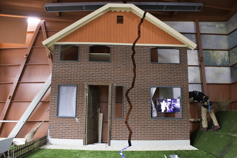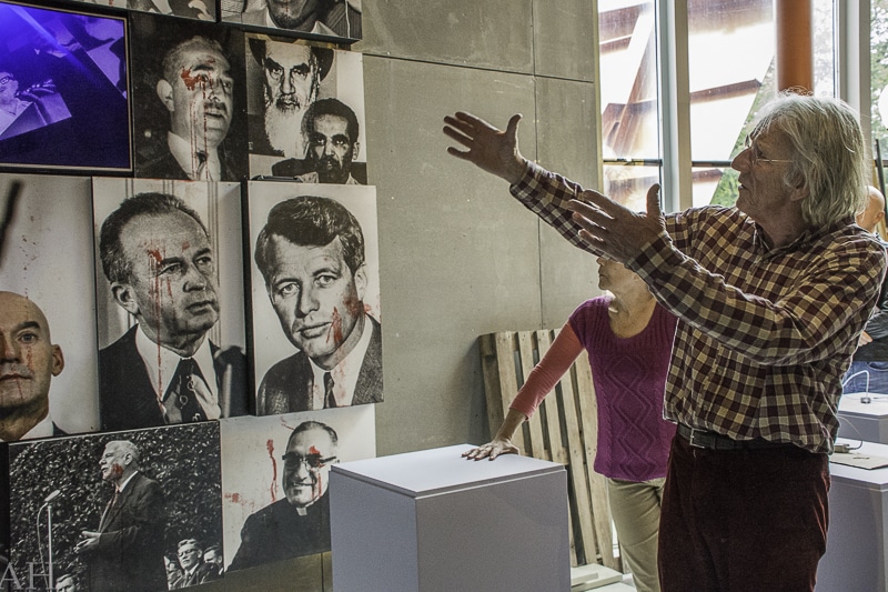 Freek de Jonge heeft zich zichtbaar sterk gemaakt voor Groningen en haar inwoners; de aardbevingen en de daaropvolgende strijd tegen onder andere de onwillige NAM en de Nederlandse overheid. De tentoonstelling bevat ook een gedeelte dat de focus legt op deze problematiek. Een rommelend huis met een scheur van top tot teen; een montage gemaakt door Hella dat het proces van Freek en zijn strijd voor Groningen weergeeft inclusief beelden van de fakkeltocht van afgelopen januari. Horen, zien en voelen zijn de zintuigen die sowieso aangesproken worden bij dit element. Het gebruik van geur durf ik (nog) niet te zeggen, maar het feit dat de aardbevingsproblematiek nog niet is opgelost is toonbeeld van slechte smaak.