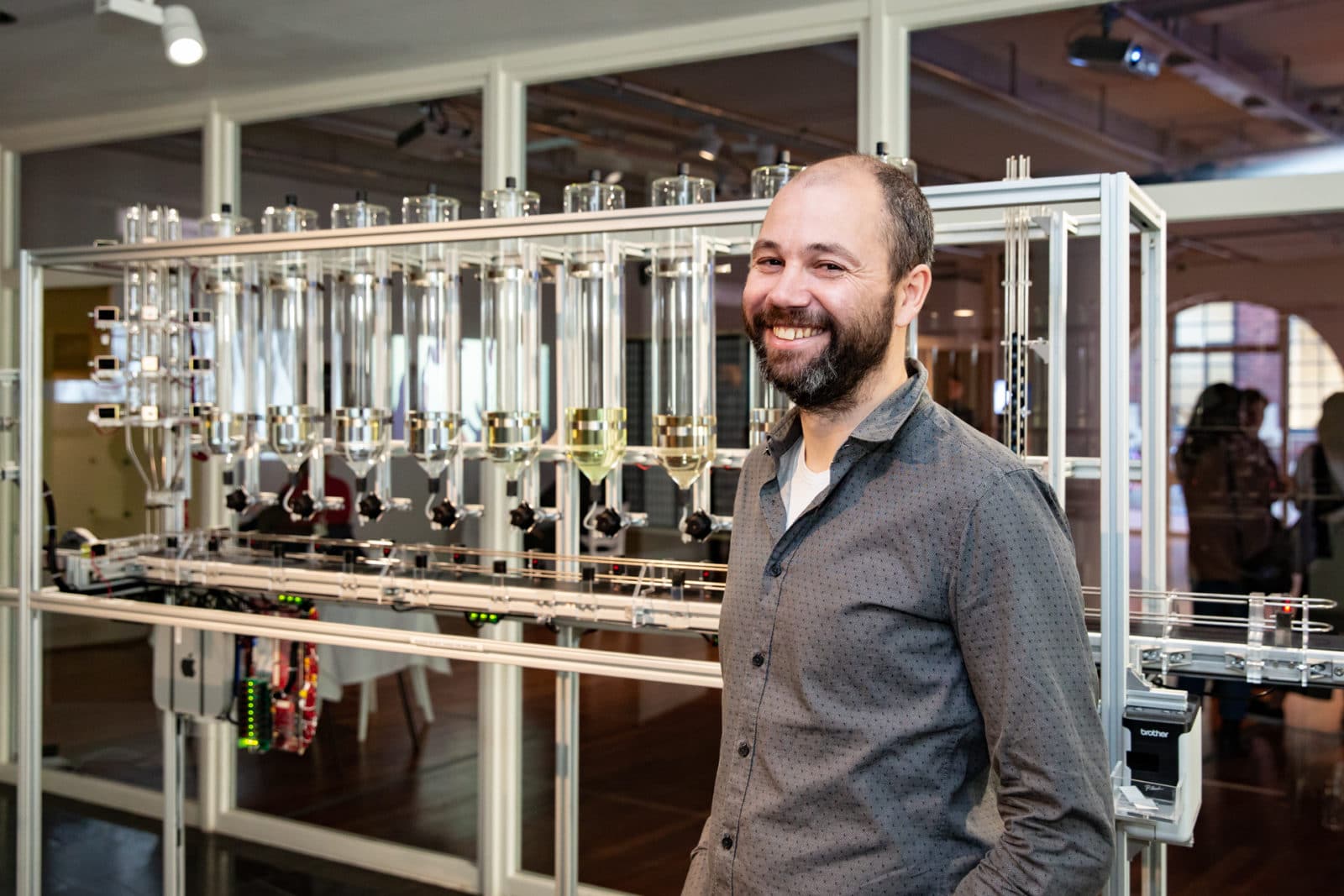 Een ander opvallend project waarin de menselijke ervaring misschien nog wel meer centraal staat is de Algorithmic Perfumery van Frederik Duerinck. Diens fascinatie voor installaties die werken met geur – zie zijn eerdere Famous Deaths – leidde dit keer tot een machine die voor iedere bezoeker een persoonlijk parfum kan bereiden.