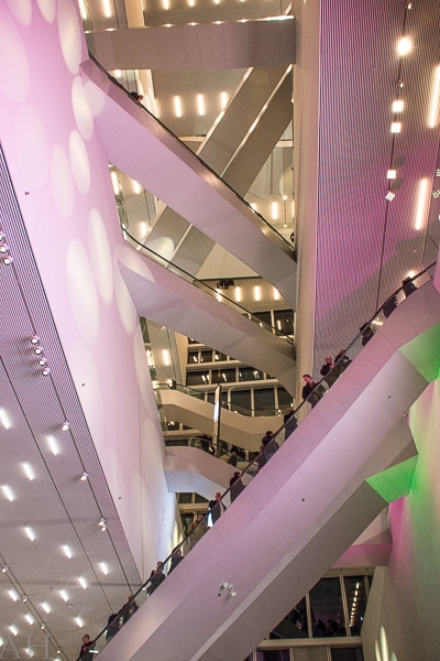 Wat als eerste in het oog springt, zijn de enorme roltrappen. Deze deden mij denken aan de bewegende trappen in Harry Potter’s Zweinstein. De langste roltrap transporteerde mij mentaal naar de drukke ‘underground’ van Londen. Daar was ook er één die zo enorm steil was, dat het voelde alsof ik achteroverleunend naar boven werd vervoerd. Mensen met hoogtevrees worden hier niet blij van. Neem dus de lift.