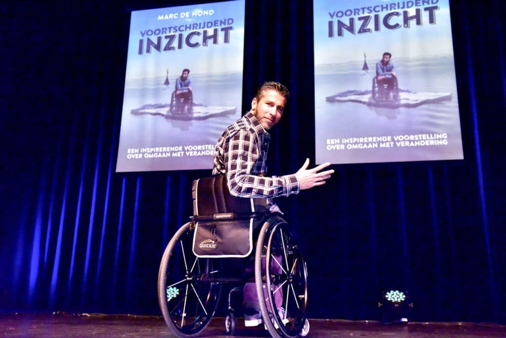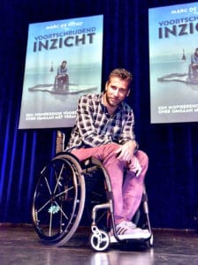 ‘Sinds 2002 heb ik een dwarslaesie. Over hoe dat is gebeurd, wil ik het niet meer hebben – als iemand het per se wil weten, moet hij maar even googelen. Belangrijker dan hoe het is gekomen, is hoe je met zo’n levensveranderende gebeurtenis omgaat. Dáár wil ik het over hebben.