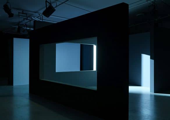 Een compositie van strakke vormen, licht en geluid. In het donker gloeien steeds veranderende kleuren op. Plots dwaalt een helderwit geprojecteerd vierkant rond. Ik zie schaduwen van mezelf en andere bezoekers. En er is muziek. Dat laatste komt me voor als een kleine knieval. Want roept deze omgeving zelf nu gevoelens op door kleur en licht? Of is het toch, zoals vaak in films, de soundtrack? Bij mij doet de muziek in ieder geval het meeste werk. Maar ik hoor dat iemand anders zich helemaal in het kalme kleurenspel verloor. De website waagt zich zelfs aan de beeldspraak dat je hier al wandelend een personage in je eigen film wordt. Wie weet.