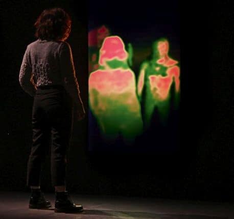 De Argentijnse filmmaker Lucrecia Martel (Zama) gebruikte voor deze digitale spiegels infraroodcamera’s die op de bezoeker zijn gericht. Menselijke gedaanten veranderen daardoor in een soort spookachtige verschijningen. Op het scherm zie ik dat andere gestalten zich bij me voegen, maar als ik omkijk zie ik niets. Zijn het geesten?