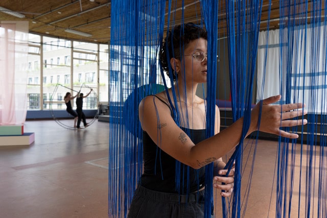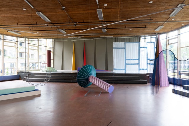 Voor haar eerste solotentoonstelling in Nederland heeft de Peruaanse kunstenaar Andrea Canepa (Lima, 1980) de Aula-ruimte van de Appel tot haar beschikking als de locatie voor haar voortdurende onderzoek naar de organisatie van de fysieke en sociale structuren, ofwel organisatiesystemen, die ons dagelijkse leven vormgeven. Canepa laat zien dat hoewel de ruimtelijke en architecturale parameters van deze organisatiesystemen duidelijk gemarkeerd kunnen lijken, hun programma – hoe ze worden gebruikt – vaak onduidelijk is. Een onduidelijkheid die is gebaseerd op het gegeven dat de grenzen van bijna alle aspecten van menselijke interactie dubbelzinnig zijn. Naast de performatieve kenmerken van An Interior Motion, maakt Canepa deze dubbelzinnigheid duidelijk door middel van de 1:1-schaal van haar sculpturen. Door de architecturale verhalen van het monumentale interieur naast menselijke beweging te plaatsen, openen de mogelijke sociale realiteiten van het verleden en heden van dit gebouw zich, en de daarmee mogelijkheden om de ruimte en zijn vele betekenissen opnieuw te interpreteren.